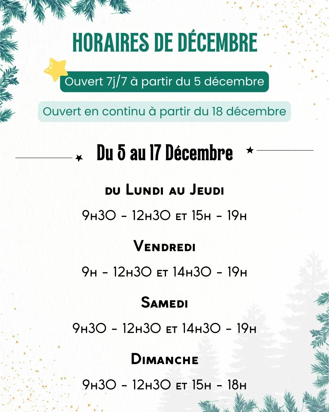 ⭐ Ouverture en continu de 9h à 19h à partir du 18 décembre ⭐